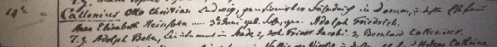 Inwieweit und ob diese mit den Deutschen Namensvettern familiär zusammenhängen liegt völlig im Dunkeln. Bei einer Recherche meinerseits in den Archiven von www.ancestry.com und anderen, stieß ich auf einige Callenius-Mitglieder, welche auch bis Mitte 18. Jh. zurückreichen. So z.B.:
