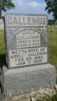 Adolf Friedrich Callenius wanderte ca. 1860 in die USA aus, heiratete dort auch um 1860 Metta Eggers (sein vermutlich erstes Kind George H. Callenius kommt am 30.07.1861 in New York zur Welt). Er wohnt für kurze Zeit in Illinois (1865) und lässt sich schließlich ebenfalls 1865 in Baker, O’Brien, Iowa nieder. Er nennt sich in den USA “Adolph William Callenius” oder auch “Adolph F. L. Callenius”. Er stirbt am 02.06.1914 (Grabstein) in Primghar, OBrian, Iowa.
